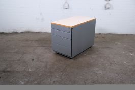 Stijlvol en Functioneel Ladeblok – Ahrend, Zilvergrijs met Ahorn Topblad, 4 Lades, Verrijdbaar, Tweedehands