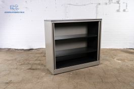 U kunt uw spullen netjes opruimen in deze nette tweedehands Ahrend roldeurkast. Deze kast is uitgevoerd met geperforeerde deuren en is zilvergrijs van kleur, met een zebrano topblad. De afmetingen van deze gebruikte kast zijn 110 cm hoog, 120 cm breed en 45 cm diep. Deze kast wordt standaard zonder sleutel geleverd, maar we kunnen deze altijd voor u bijbestellen!