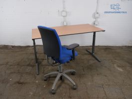U kunt prettig aan het werk aan dit tweedehands bureau van het merk Ahrend. Het bureau is handmatig verstelbaar naar uw wens. De afmetingen van dit gebruikte bureau zijn 160 cm breed en 80 cm diep. Het blad is van beuken trespa hout met daaronder een grijs frame.