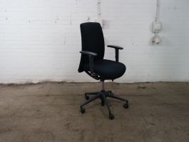 U zit uiterst comfortabel te werken in deze tweedehands bureaustoel van het merk Aspa Drabert. De stoel is donker blauw gestoffeerd, met zwart onderstel en met verstelbare armleuningen. Deze gebruikte bureaustoel is voorzien van een verstelbare zithoogte en is verrijdbaar.