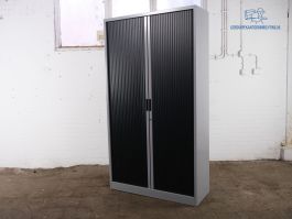 U kunt uw spullen netjes en veilig opbergen in deze tweedehands roldeurkast van het merk Aspa. De kast is lichtgrijs van kleur met zwarte deuren. Deze gebruikte kast is uitgevoerd met 4 legborden. De afmetingen van deze kast zijn 195 cm hoog, 120 cm breed en 45 cm diep. Standaard wordt deze gebruikte roldeurkast geleverd zonder sleutel. deze kunnen we uiteraard wel voor u bijbestellen.