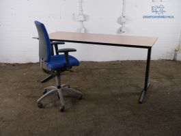 U kunt comfortabel werken aan dit tweedehands rechte bureau. Het bureau is voorzien van een beuken kleur blad met daaronder een antraciet frame. De afmetingen van dit gebruikte bureau zijn 200 cm breed, 80 cm diep en de hoogte is handmatig verstelbaar. Let op: er zit een kraasje op het blad, niet storend (zie foto)