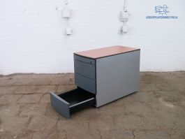 In dit tweedehands ladeblok kunt u netjes en veilig uw spullen opbergen. Het is donkergrijs van kleur met een topblad van noten hout. Dit gebruikte ladeblok heeft 4 lades, waaronder 1 pennenlade en 3 lades. De afmetingen zijn 54 cm hoog, 42 cm breed en 79 cm diep. Dit wordt standaard geleverd zonder sleutel, deze kunnen we uiteraard wel voor u bij bestellen.