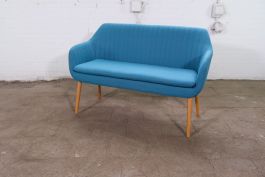 Bank | Tweedehands | Turquoise gestoffeerd | Houten poten | OS268