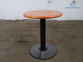 Deze tweedehands bijzettafel kunt handig inzetten in verschillende (bedrijfs)ruimtes. De tafel is voorzien van een kersen blad op een zwart trompetvoet met chromen details. Deze gebruikte bijzettafel is 62 cm hoog, met diameter van 60 cm. De tafel verkeert in goede staat.