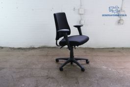 Werk comfortabel en ergonomisch met deze tweedehands bureaustoel van het merk BMA AXIA. Deze gebruikte stoel is zwart gestoffeerd en rust op een zwart onderstel, wat zorgt voor een strakke, professionele uitstraling.