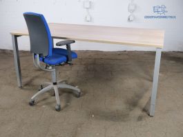 U kunt prettig werken aan dit tweedehands rechte bureau. Het blad van het bureau is robson eiken van kleur (nieuw) op een grijs frame. De afmetingen van dit gebruikte bureau zijn 200 cm breed, 100 cm diep en is handmatig in hoogte te verstellen.