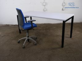 Achter dit bureau kunt u lekker ontspannen zitten te werken. Het bureau heeft een lichtgrijs blad hieronder bevindt zich ook een zwart poot-frame. De afmetingen van het bureau zijn: 200cm breed en 80cm diep. Het bureau is handmatig in hoogte verstelbaar. Dit gebruikte bureau verkeert in prima staat.