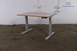 U kunt fijn werken aan dit tweedehands bureau. Het bureau is gemakkelijk met de slinger te verstellen van een hoogte van 63 cm tot 86 cm hoog. De afmetingen van dit robson eiken blad zijn 120 cm breed en 80 cm diep. Verder is dit bureau voorzien van een zilvergrijs T-poot frame.