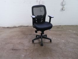Bureaustoel | Gebruikt | Zwart gestoffeerd | Mesh rug | Zwart onderstel | Verstelbaar limbaalsteun | BS330
