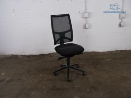 U kunt prettig werken in deze tweedehands bureaustoel. De stoel heeft zwart gestoffeerd zitting met mesh rug op een zwart onderstel. Deze tweedehands stoel is kantelbaar, heeft schuifzitting functie en uitgevoerd zonder armleuningen. Deze gebruikte bureaustoel is verrijdbaar en handmatig in hoogte verstelbaar.