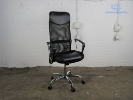 Met deze zo goed als nieuwe bureaustoel kunt u comfortabel zitten aan uw bureau. De bureaustoel is bekleed deels met zwart stof/ pu kunstleder in combinatie met een mesh rugleuning waar het bovenste gedeelte ook bekleed is met kustleder, heeft een chromen onderstel en is verrijdbaar. Op deze gebruikte stoel kunt u prima een paar uur zitten te werken.