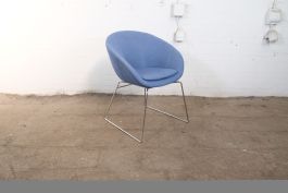 Fraaie Tweedehands Vergaderstoel – Deberenn Giro, Blauw Vilt, Chroom Sledeframe, Met Armleggers