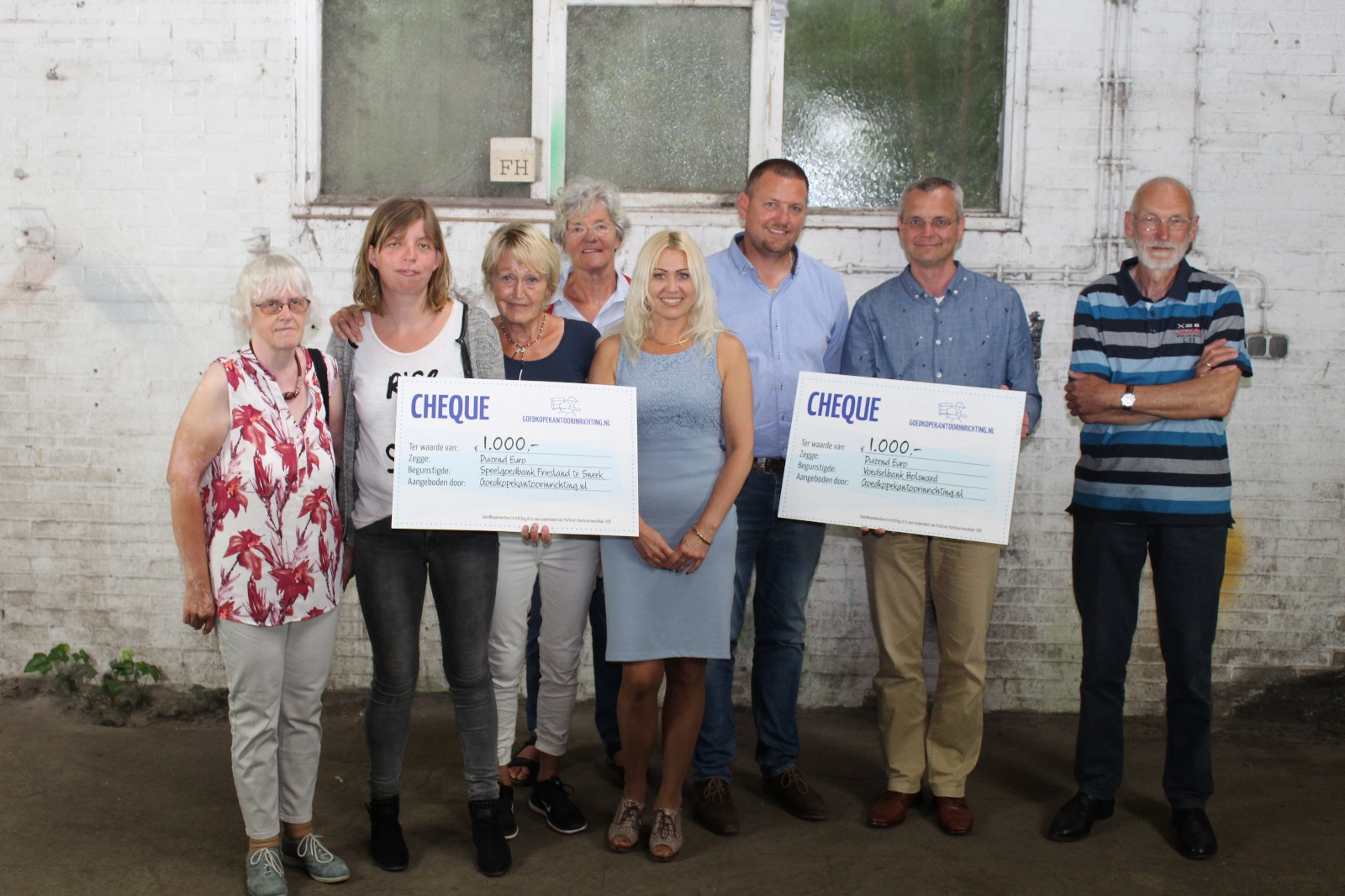 Na een welkom en een korte uitleg waarom we dit deden, mochten twee vertegenwoordigers de cheques van elk €1000,- in ontvangst nemen. Dit geld is vrij te besteden en zal ongetwijfeld een mooi verschil maken voor de mensen die zij helpen. Het voelde voor ons veel waardevoller dan het uitdelen van relatiegeschenken, en we hopen hiermee ook onze klanten te laten zien dat we maatschappelijk verantwoord ondernemen serieus nemen.