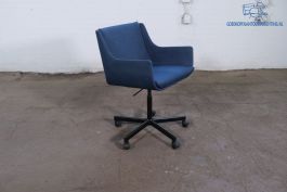 Design |Fauteuil | Tweedehands | Blauw gestoffeerd | Zwart verrijdbaar frame | OS276
