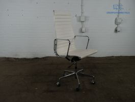 In deze tweedehands design bureaustoel kunt u comfortabel zitten aan uw bureau. De luxe bureaustoel is met wit PU kunstleer bekleed en heeft een chromen onderstel. Deze gebruikte bureaustoel is in hoogte verstelbaar, heeft chromen armleuningen en is verrijdbaar.
