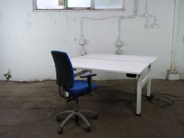 U kunt samen met een collega prettig werken aan deze tweedehands duo werkplek van het merk Schaffenburg. Deze gebruikte duo werkplek is voorzien van een wit blad op een wit frame. De afmetingen van dit nette dubbele bureau zijn 160 cm breed, 80 cm diep (per bureau), en is elektrisch in hoogte verstelbaar van 65 cm tot 130 cm.