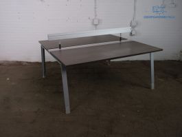 Aan deze nette duo werkplek kunt u samen met uw collega prettig aan het werk. De werkplek bestaat uit 2 bladen van 180 cm breed en 80 cm diep. In het geheel is deze tweedehands duo werkplek 180x180 cm. In het midden zit een montage rail voor o.a. documenten- en pennenbakjes. Het zilvergrijze frame is in zijn geheel handmatig in hoogte te verstellen. De bladkleur van deze werkplek is antraciet eiken.