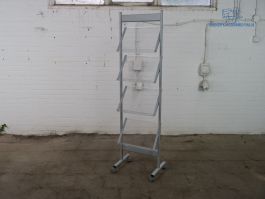 Tweedehands Folderdisplay – Zilvergrijs, 4 Schappen, Verrijdbaar