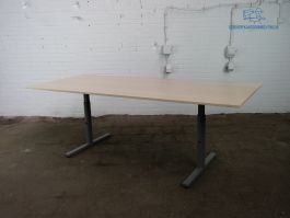 Gispen Vergadertafel – Ahorn Blad, Zilvergrijs T-Poot Frame, Handmatig Verstelbaar, 240x100 cm