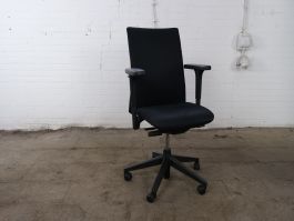 U zit uiterst comfortabel te werken in deze tweedehands bureaustoel van het merk Haworth. De stoel is zwart gestoffeerd, met zwart onderstel en met verstelbare armleuningen. Deze gebruikte bureaustoel is voorzien van een verstelbare zithoogte en is verrijdbaar.