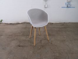 Deze tweedehands design vergaderstoel van HAY is een mooie aanwinst in elke vergaderruimte. De gebruikte stoel heeft een witte kuip van kunststof met een grijze stoffering met een houten poten daaronder. De stoel is niet stapelbaar, heeft zithoogte van 47 cm en verkeet in zeer nette staat.
