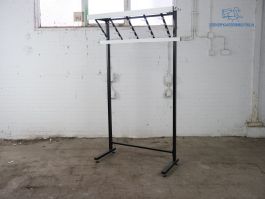 De jassen kunnen voortaan netjes opgehangen worden aan deze tweedehands wandgarderobe/ staande kapstok van het merk Hermeta. Deze duurzame aluminium garderobes van top kwaliteit kunnen worden toegepast in vele projecten. Deze gebruikte kapstok/ garderobe/ wandgarderobe is zwart van kleur met zilvergrijze accenten, met totaal 20 haakjes. De afmetingen zijn 181 cm hoog, 103 cm breed en 47 cm diep.