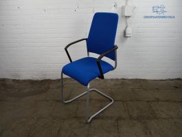 Met deze nette tweedehands vergaderstoel van het merk Interstuhl kunt u fijn overleg voeren met uw collega's! De gebruikte vergaderstoel heeft een blauw gestoffeerde zitting en rugleuning en een zilvergrijs sledeframe. Deze stoel is ook uitgevoerd met zwarte armleuningen en is stapelbaar.