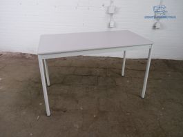 Deze tweedehands kantinetafel heeft zowel een grijs blad als een grijs frame. De afmetingen van deze gebruikte tafel zijn 140 cm breed en 70 cm diep, de hoogte zit op 75 cm.