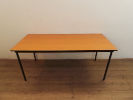 Aan deze tweedehands kantine tafel kunt u goed zitten samen met u collega's. De tafel is voorzien van een kersen kleur blad op een zwart frame. De afmetingen van deze gebruikte kantinetafel zijn 75 cm hoog, 180 cm breed en 80 cm diep.
