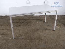 U kunt prima pauzeren met uw collega's aan deze tweedehands rechte kantinetafel. De gebruikte tafel is voorzien van een grijs kleur blad op een grijs frame. De afmetingen van deze gebruikte kantinetafel zijn 75 cm hoog, 160 cm breed en 80 cm diep. Let op: tafel heeft zichtbare gebruikssporen.