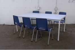 Deze tweedehands kantinetafel is een perfecte keuze voor wie op zoek is naar een praktische en robuuste tafel voor een kantine, bedrijfsruimte of andere sociale omgevingen. Met een grijs topblad, een grijs frame en witte poten biedt deze tafel een strakke en moderne uitstraling die makkelijk in verschillende interieurstijlen past. De ruime afmetingen maken de tafel ideaal voor vergaderingen, gezamenlijke pauzes of samenwerkingsruimtes.