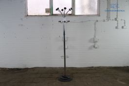U kunt uw jassen netjes ophangen aan deze tweedehands staande kapstok. De kapstok is verchroomd en heeft zwarte details. De kapstok leunt op een ronde poot en is voorzien van een parapluhouder. De totale lengte is 180 cm.