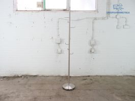 U kunt uw jassen ophangen aan deze mooie tweedehands kapstok. De kapstok is volledig RVS en heeft hierdoor een nette uitstraling. De hoogte van deze kapstok is 170 cm.