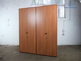 In deze tweedehands tweedelige klapdeurkast kunt u netjes uw spullen opruimen. De kast is kersen van kleur en legborden zijn zwart. De kast is voorzien van 4 legborden. De afmetingen van deze gebruikte kast zijn 197 cm hoog, 188 cm breed en 48 cm diep. Deze kast wordt wel met de sleutels geleverd!