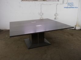 Tweedehands Vergadertafel – Kluskens, Massief Antraciet Eiken Blad, RVS Details, 220x220 cm