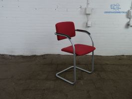 Op deze tweedehands vergaderstoel van het merk Lande kunt u comfortabel zitten tijdens uw vergadering. Deze gebruikte vergaderstoel is rood gestoffeerd, heeft armleuningen met daarop zwarte armleggers en lichtgrijs sledeframe. Deze tweedehands vergaderstoel is stapelbaar. Deze gebruikte vergaderstoel verkeet in zeer nette staat.