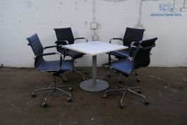 Deze jong gebruikte vergadertafel van Lensvelt is een stijlvolle en functionele aanvulling op iedere vergaderruimte. Het strakke witte blad in combinatie met het zilvergrijze gepolijste aluminium frame zorgt voor een moderne en professionele uitstraling, geschikt voor zowel zakelijke als creatieve omgevingen. De tafel biedt voldoende ruimte voor kleine tot middelgrote vergaderingen en is ontworpen voor comfort en gebruiksgemak.