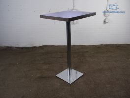 Deze tweedehands design statafel van het merk Mayer is op meerdere (werk)plekken inzetbaar. De gebruikte vierkante tafel is voorzien van een noten hout blad op een chromen voet. De afmetingen van deze gebruikte statafel zijn 112 cm hoog, 70 cm breed en 70 cm diep. De tafel verkeert in zeer nette staat.