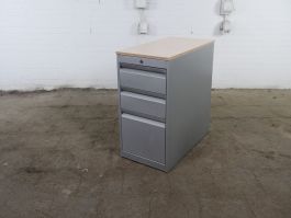 Dit tweedehands Mibra ladeblok biedt een praktische oplossing voor het opbergen van documenten en kantooraccessoires. Het elegante zilverkleurige design en de ahorn topblad zorgen voor een frisse, moderne uitstraling in uw kantoorruimte. Dankzij de slimme indeling kunt u uw werkplek efficiënt organiseren.