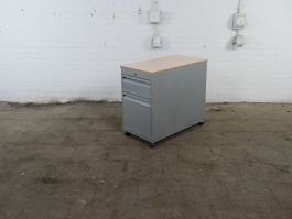 In dit tweedehands Mibra ladeblok kunt u uw spullen netjes opruimen. Het ladeblok is zilvergrijs van kleur met een ahorn topblad daarop. Dit gebruikte verrijdbare ladeblok is voorzien van 2 lade en 1 archieflade. De afmetingen zijn 62 cm hoog, 42 cm diep en 80 cm diep. Standaard wordt dit ladeblok geleverd zonder sleutel, deze kunnen wij natuurlijk wel voor u bij bestellen.