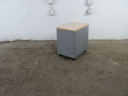 In dit tweedehands Mibra ladeblok kunt u uw spullen netjes opruimen. Het ladeblok is zilvergrijs van kleur met een ahorn topblad daarop. Dit gebruikte verrijdbare ladeblok is voorzien van 3 lades. De afmetingen zijn 57 cm hoog, 42 cm diep en 60 cm diep. Standaard wordt dit ladeblok geleverd zonder sleutel, deze kunnen wij natuurlijk wel voor u bij bestellen.