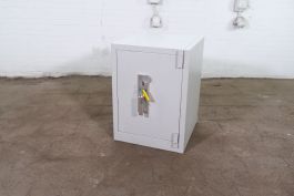 Deze stevige, tweedehands brandwerende kast van het merk Miller Safe is een ideale keuze voor het veilig opbergen van belangrijke documenten of waardevolle spullen. Dankzij de compacte afmetingen en het solide metalen ontwerp past deze kast perfect in zowel professionele omgevingen als thuiskantoren waar veiligheid en ruimtegebruik belangrijk zijn.