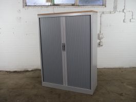 U kunt uw spullen netjes en veilig opbergen in deze tweedehands roldeurkast van het merk Palmberg. De gebruikte kast is zilvergrijs van kleur met een havanna topblad erop, voorzien van 3 legborden. De afmetingen zijn 147 cm hoog, 120 cm breed en 45 cm diep. De kast wordt standaard geleverd zonder sleutel, deze kunnen we uiteraard wel voor u bij bestellen.