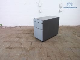 Tweedehands Ladeblok – Palmberg, Zilvergrijs met Antraciet Topblad, 2 Lades + Archieflade