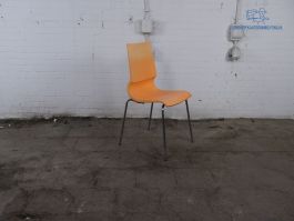 Design Kantinestoel Ricciolina – Oranje Kunststof Kuip, Chroom Frame, Stapelbaar, Tweedehands