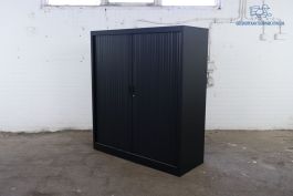 Tweedehands Roldeurkast – Zwart, 3 Legborden, 135x120x45 cm