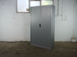 U kunt uw spullen netjes en veilig opbergen in deze gebruikte roldeurkast. De kast is van metaal, met kunststofdeuren en is zilvergrijs van kleur. Deze tweedehands kast is voorzien van 4 legborden. De afmetingen van de kast zijn 187 cm hoog, 125 cm breed en 45 cm diep. Deze kast wordt standaart geleverd zonder sleutel. Deze kunnen wij voor u bij bestellen.