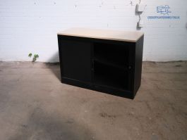 Roldeurkast | Tweedehands | Zwart | Ahorn topblad | 1 legbord | LK238