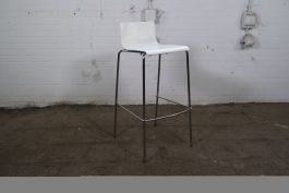 Deze tweedehands Sentesi barkruk combineert modern design, comfort en stevigheid. De witte kunststof kuip en het chromen frame zorgen voor een frisse, eigentijdse uitstraling en een stabiele zit. Met een zithoogte van 80 cm is hij ideaal voor bars, hoge tafels of keukeneilanden.